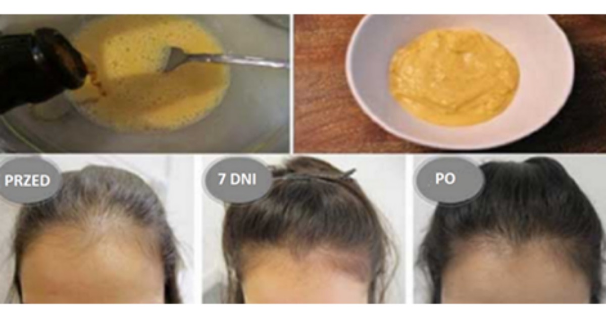 Zmiksuj cztery składniki w blenderze, aż uzyskasz gładką pastę. Nałóż pastę na skórę głowy i delikatnie masuj przez kilka minut. Po pozostawieniu maski na około godzinę, umyj włosy szamponem i dokładnie spłucz. Zanim umyjesz włosy szamponem, nałóż maskę. Po około 10 dniach zaczną być widoczne efekty działania maski.